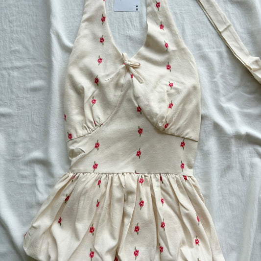 CREAM FLORAL BUBBLE TOP (Bust : 34-36, Upper Waist : 26-32)