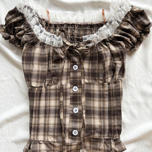BROWN PLAID TOP (Bust : 30-34, Upper Waist : 24-28)