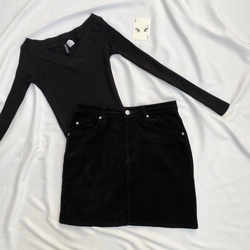 BLACK CORDUROY SKIRT (Waist : 26-28)