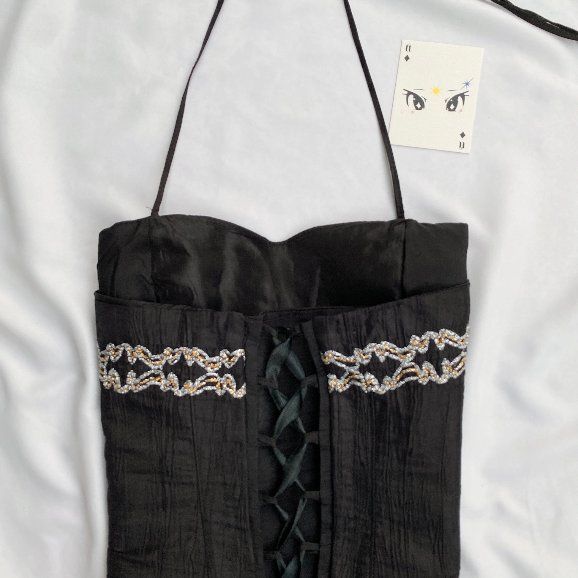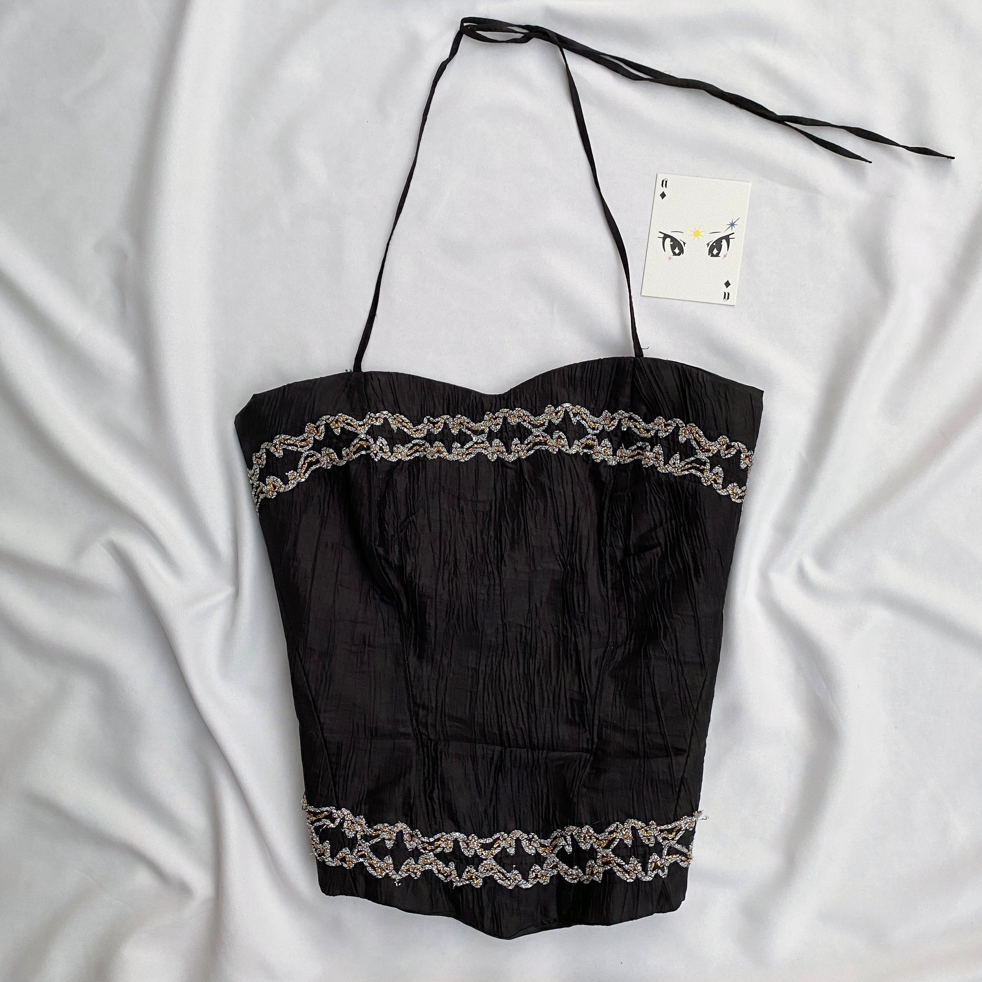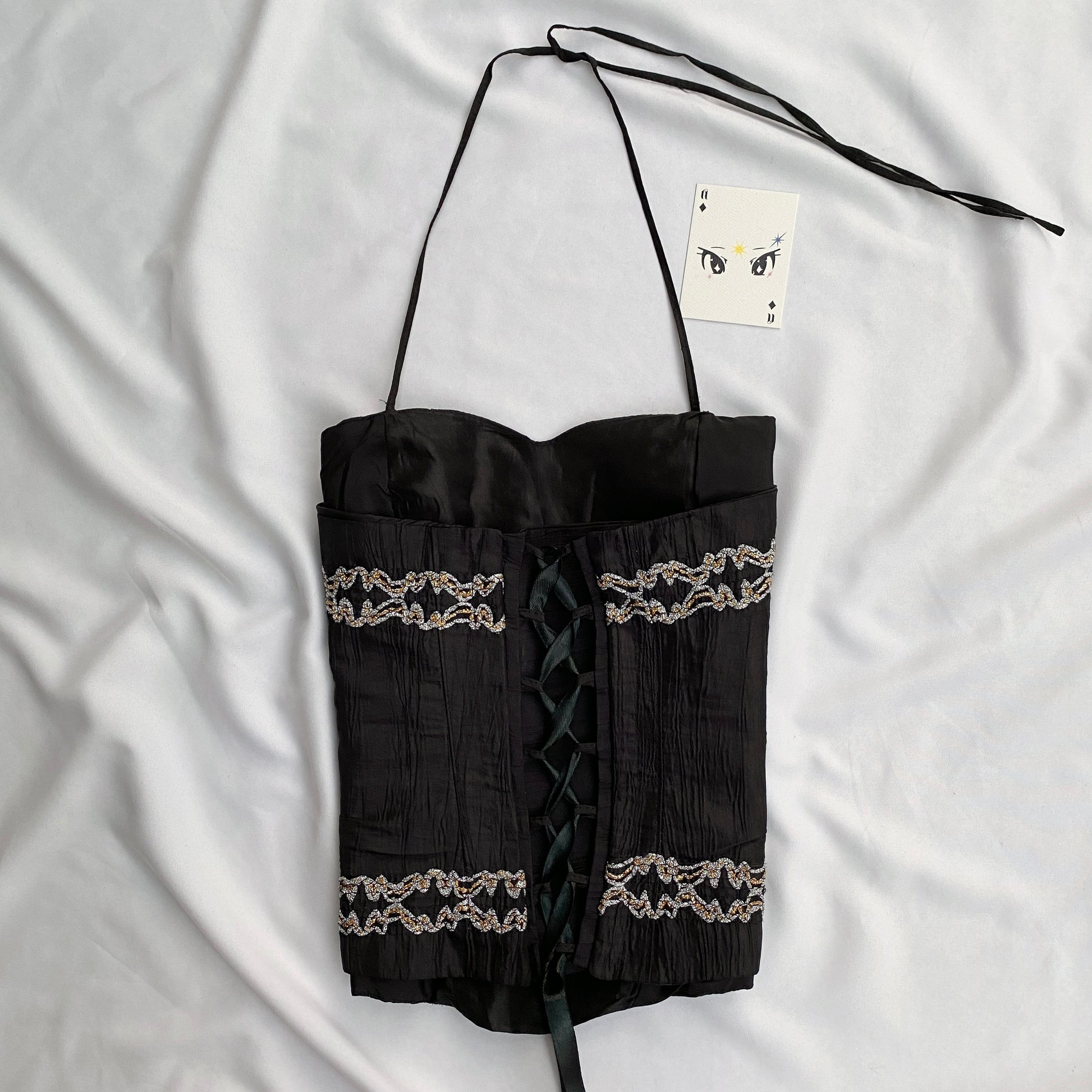 BLACK HALTER EMBELLISHED CORSET (Bust : 28-32, Upper Waist : 24-28)