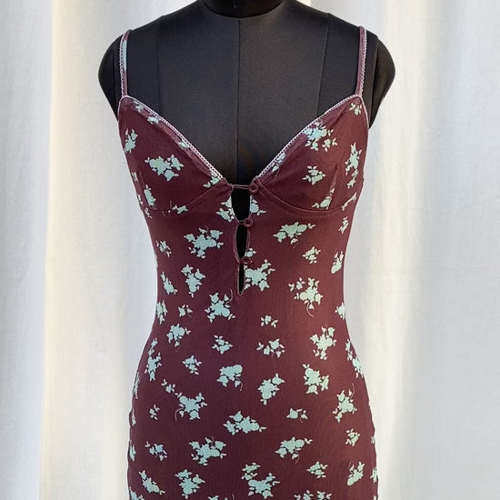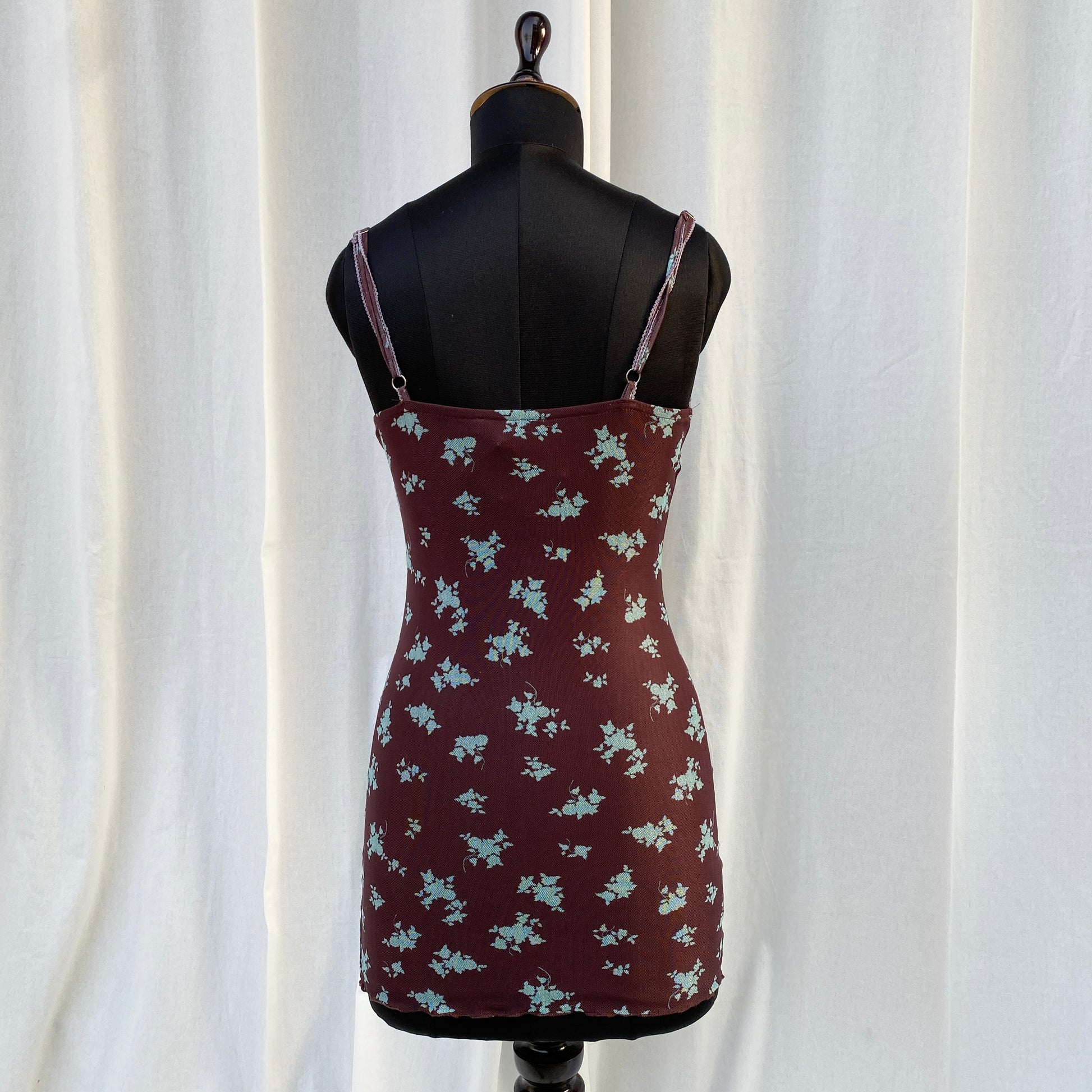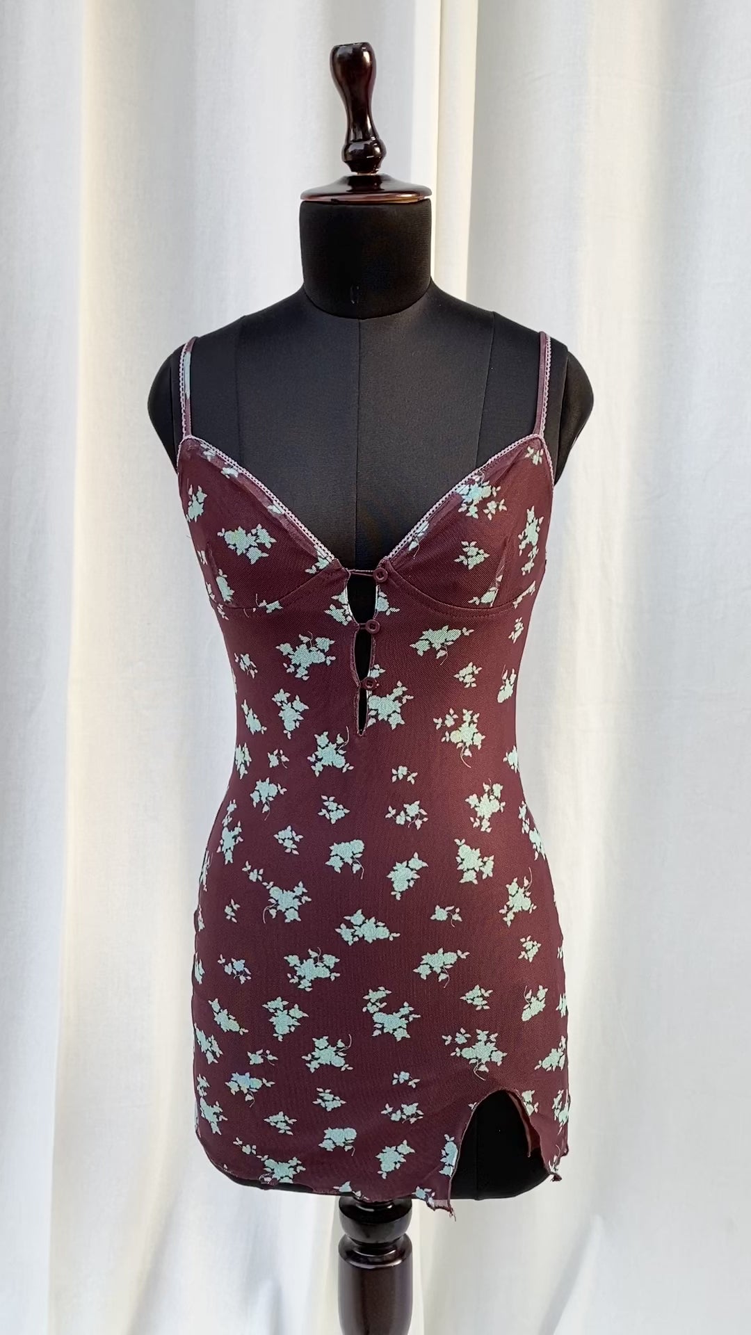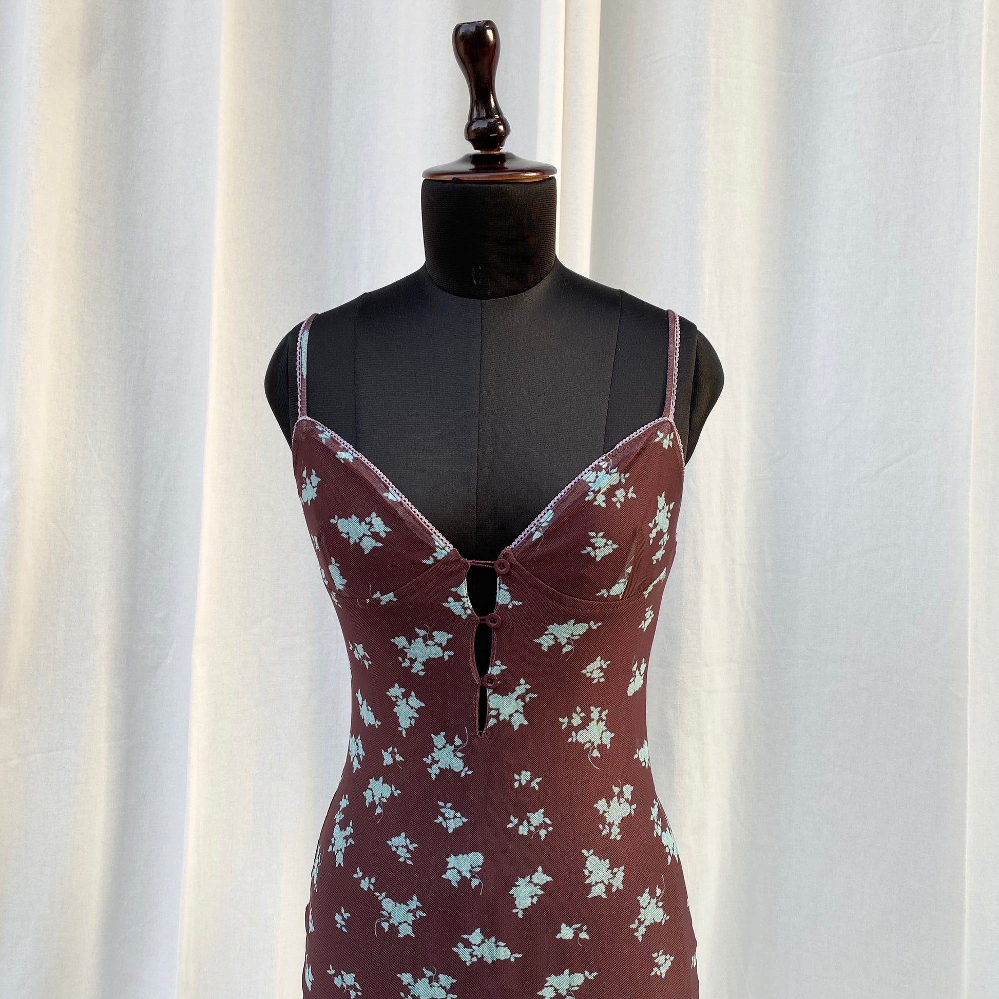 BROWN AND BLUE FLORAL DRESS (Bust : 28-32, Upper Waist : 24-28)