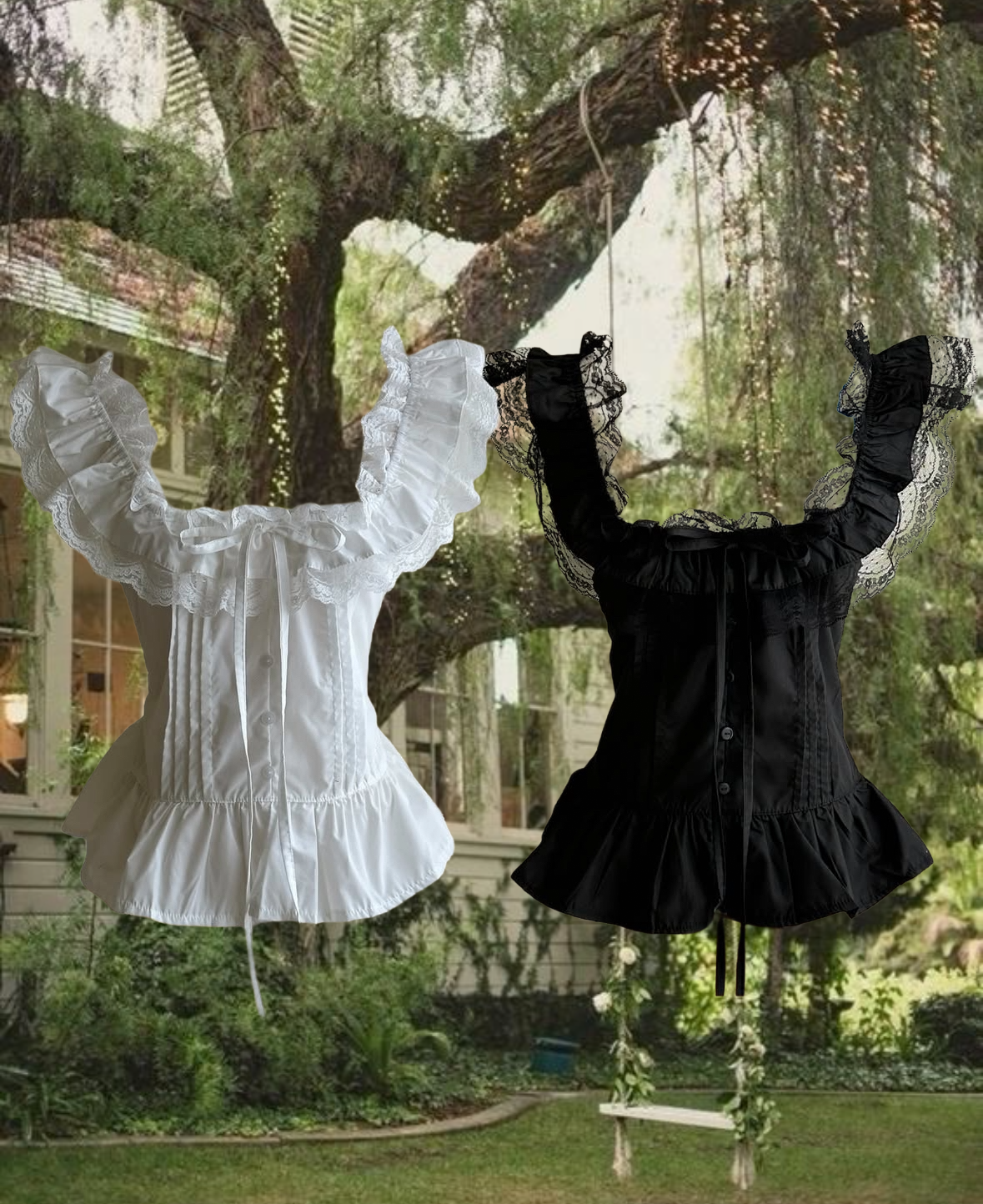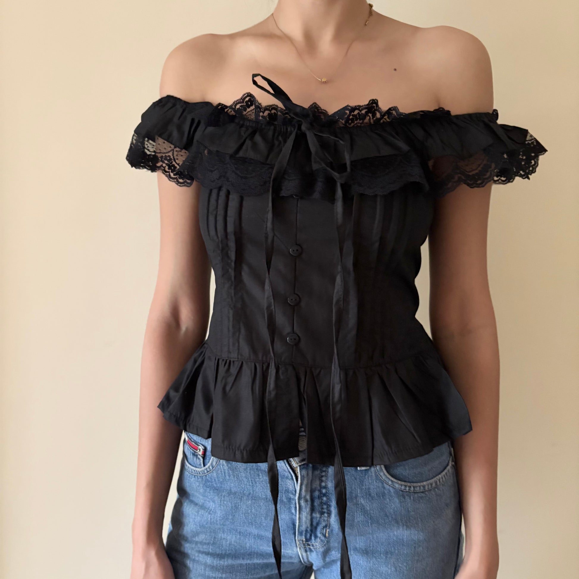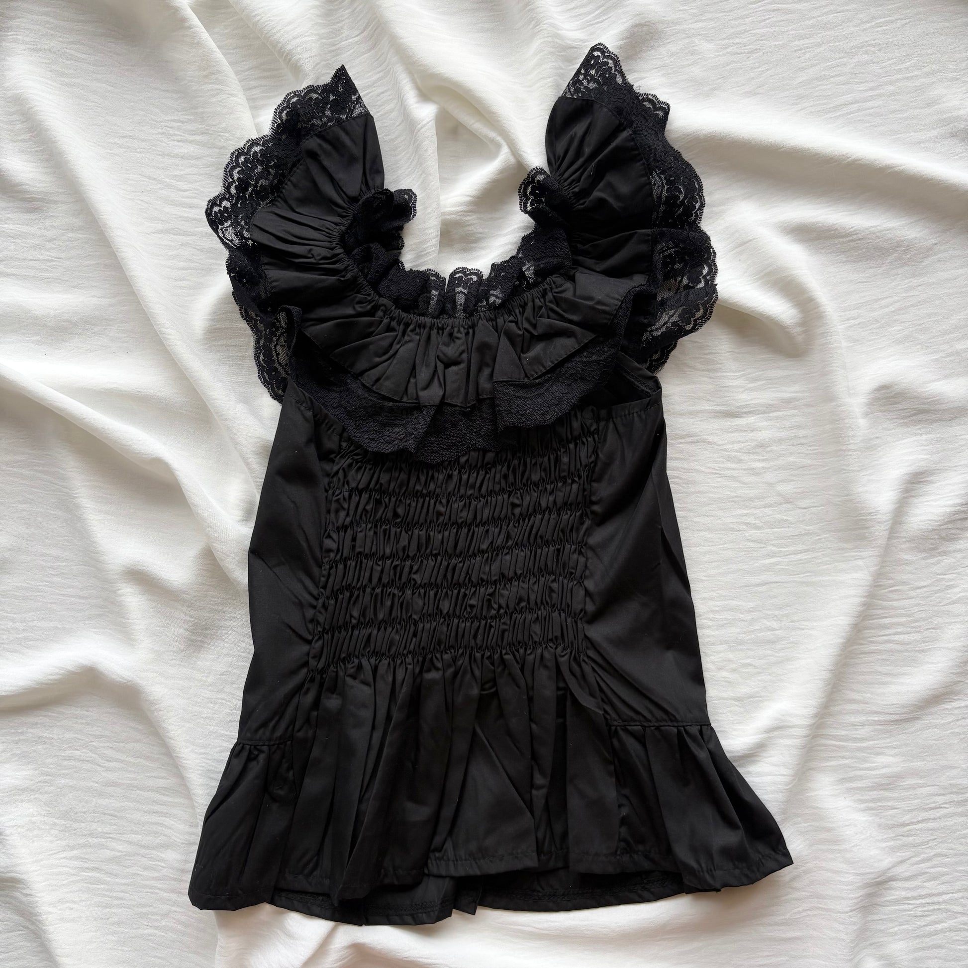 BLACK COTTAGECORE TOP (Bust : 30-34, Upper Waist : 24-28)