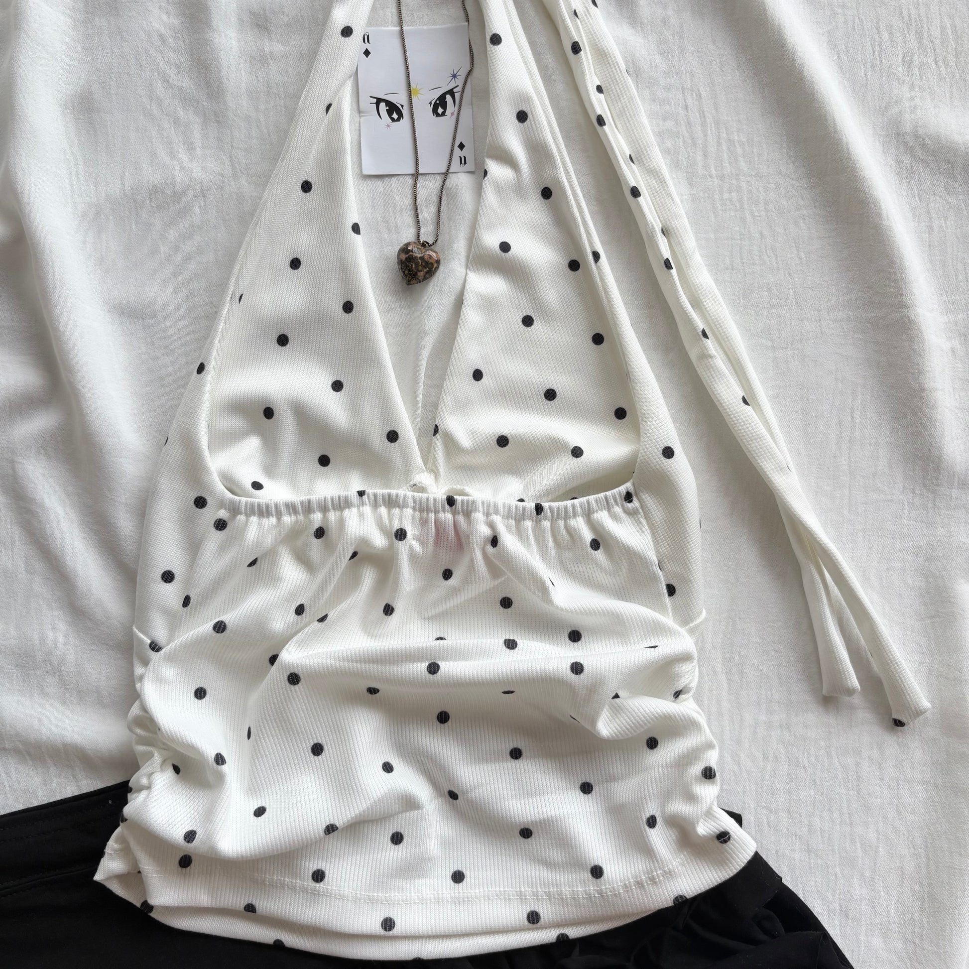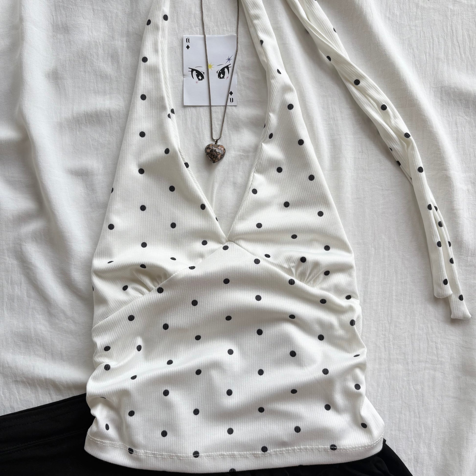 WHITE POLKA DOT TOP (Bust : 28-34, Upper Waist : 24-28)